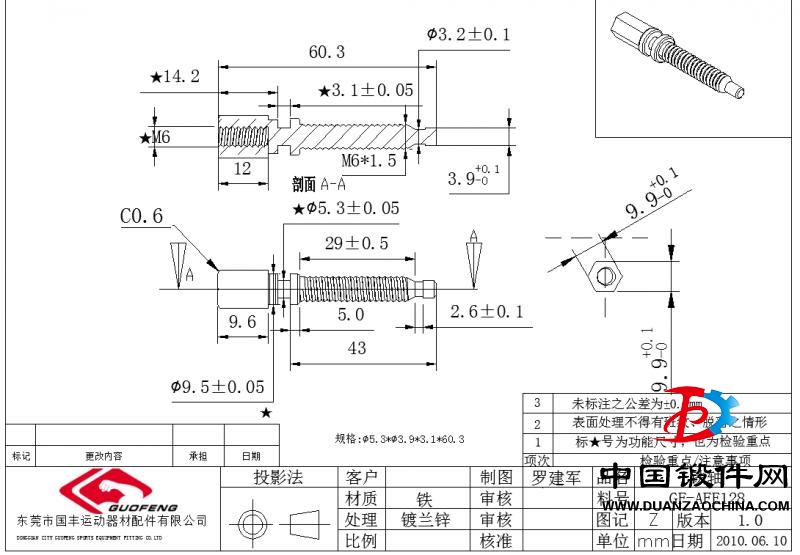 采购 铁镀兰锌铁轴一款,总长60.3mm