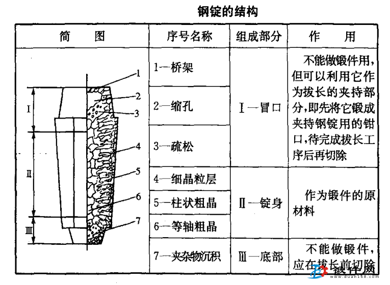 钢锭常常作为大、中型自由锻件的原材料。其结构见表3。