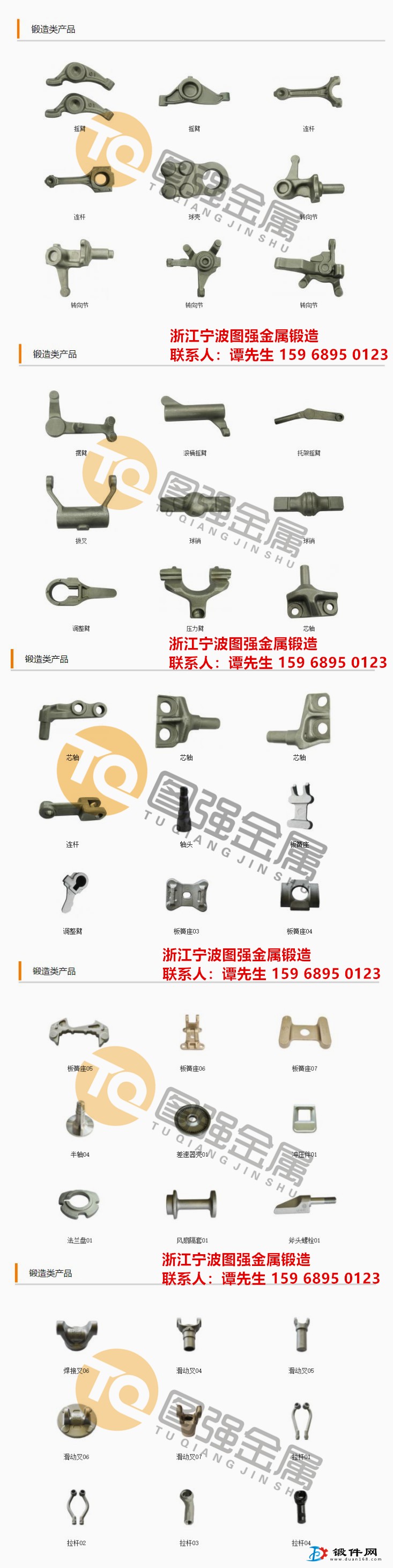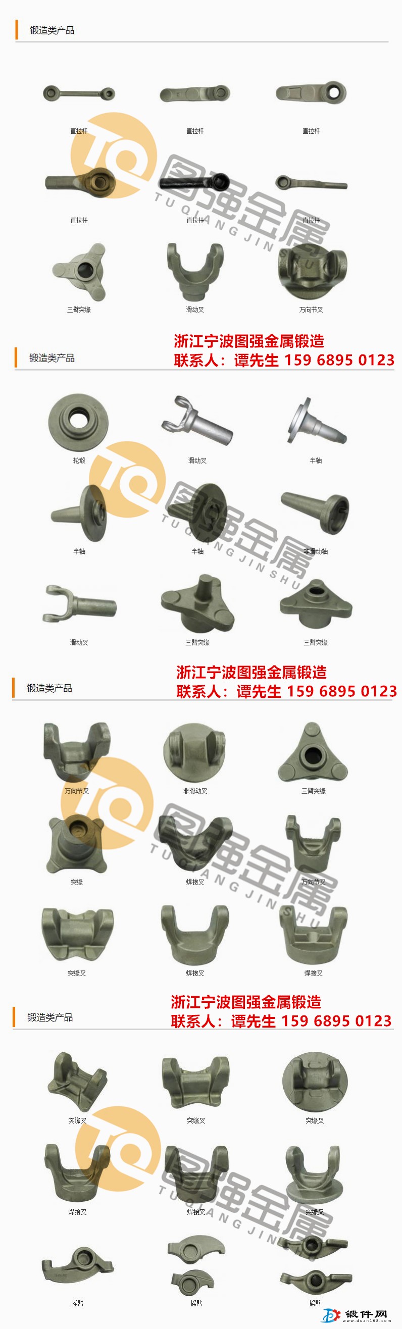 主导产品为:锻件,模锻件,热锻件,锻造,锻打,钢锻件,红锻件,汽摩精密锻件、矿山设备精密锻件、石油管件锻件、音响喇叭锻件、电动工具和齿轮、法兰及轴承毛胚。