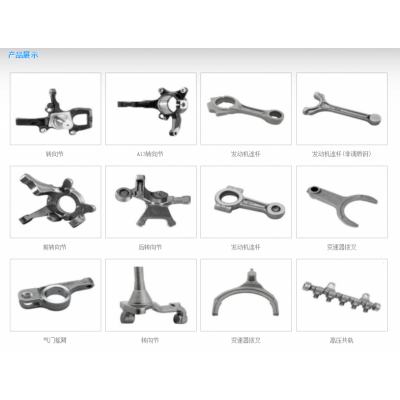 曲轴锻件、连杆锻件、万向节锻件、十字轴锻件、变档拔叉锻件、起动蹬杆锻件、摇臂锻件、曲柄锻件、