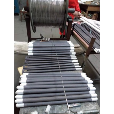 硅碳棒在使用过程中,有些时候烧过几天之后硅碳棒表面会出现白色水珠样的东西,有些客户认为是硅碳棒里面在高温下析出来的物质,会对其产品会有影响,或者说是硅碳棒质量问题。从原材料来说元件里面不存在白色物质,在混料中,属于白色物质就只有氮化硼,相对几十公斤原料添加几克的氮化硼,在每个棒都出现白色来说肯定不是这方面的原因。首先排除硅碳棒杂质一说,硅碳棒出现白色物质同一批棒来说不是所有的都有,终查明,白色物质与天气有关,存放保存有关,主要还是水汽,在新炉子使用的时候首先一定要用旧棒烘炉,带到炉子干了之后再用新棒烧结,炉子长时间不用使用的时候都要先烘炉,可以先把炉门打开一段时间,升一会之后排出水汽在关闭炉门。硅碳棒在制作成产品后表面颜色与光洁度都比较差,在市场要求外观好看的情况下,硅碳棒生产厂家在生产硅碳棒时表面会刷一层涂层,这种简单的硅碳棒涂层主要起到表面好看的作用,目前起到保护硅碳棒的涂层只有两种,是针对一些有水蒸气或气体保护的炉子专一研发,白色涂层主要用于氮气炉,能延缓氮气对元件的氮化。另一种涂层涂好后硅碳棒表面颜色乌黑并且亮晶晶的,就像是镀膜的硅钼棒一样,这种膜的耐温较高,在1300-1500度左右不会融化,能将水蒸汽与硅钼棒表面隔离,起到延长硅碳棒在水蒸汽下使用寿命的作用,这种涂层的材料比较贵,涂上后还要烘干并且要放在高温炉里面升温镀膜,费时费力,有这种乌黑发亮涂层的硅碳棒用于水蒸汽较大的炉内(如烧制蜡模),它在其它气氛或环境下使用时,不能起到保护元件的作用。