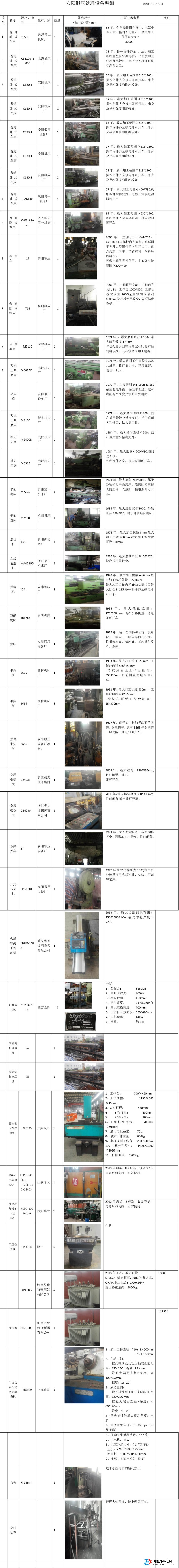 公司因设备更新,现退一批设备,卧式车床,掏料车,卧式镗床,内圆磨床,铁刃刃磨,滚齿床,万能铣床,带锯床,天车,开式压力机,四柱液压机等设备,如有需要电联宋处长 13937255928